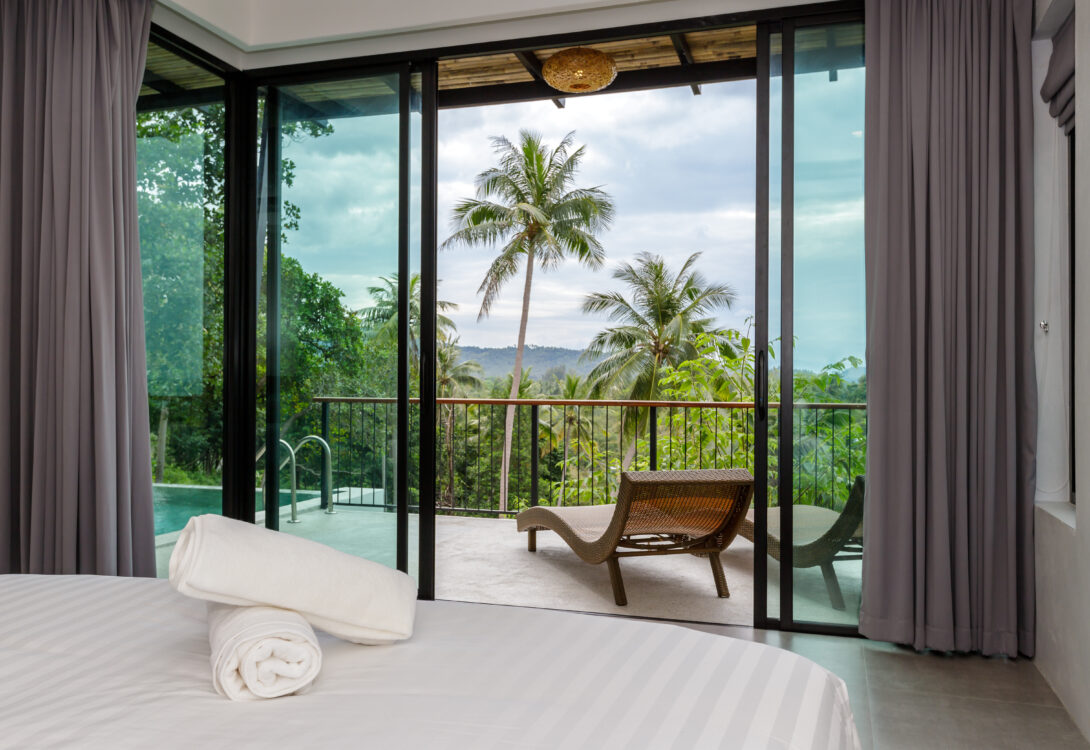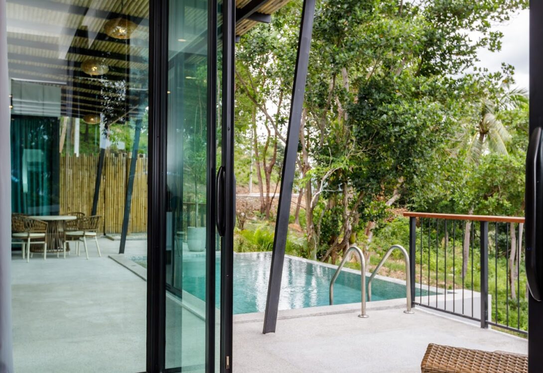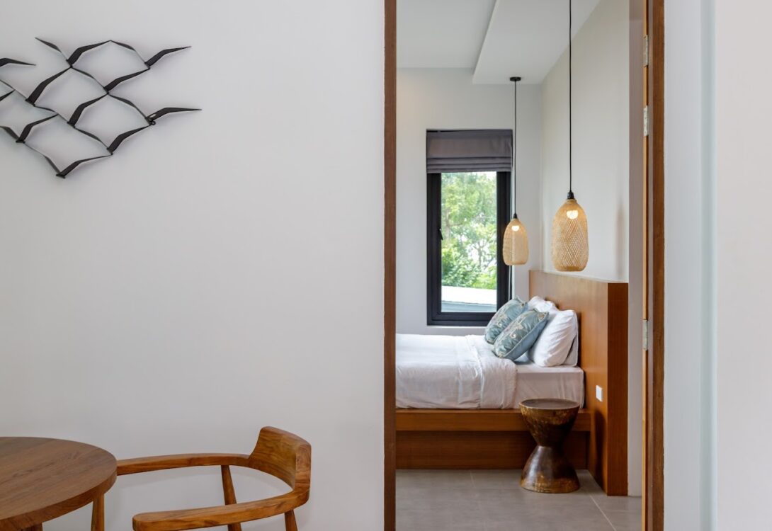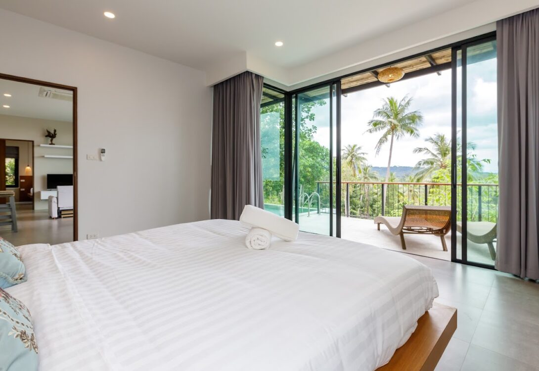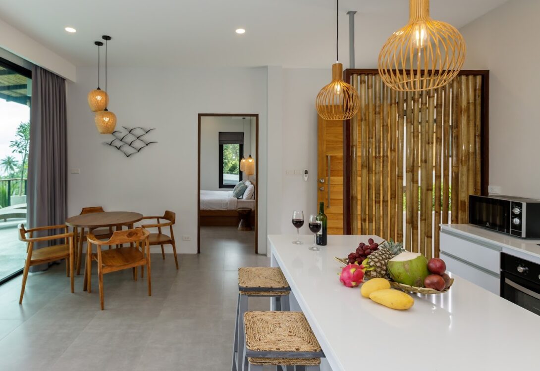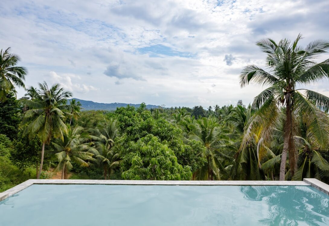 HinKong Views Pool Villa A – a 2-bedroom modern villa with an infinity pool overlooking the Bay of Hin Kong. Thoughtfully designed interiors across 160 m² create a refined and peaceful stay on one of the most desired locations.