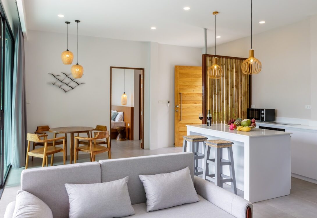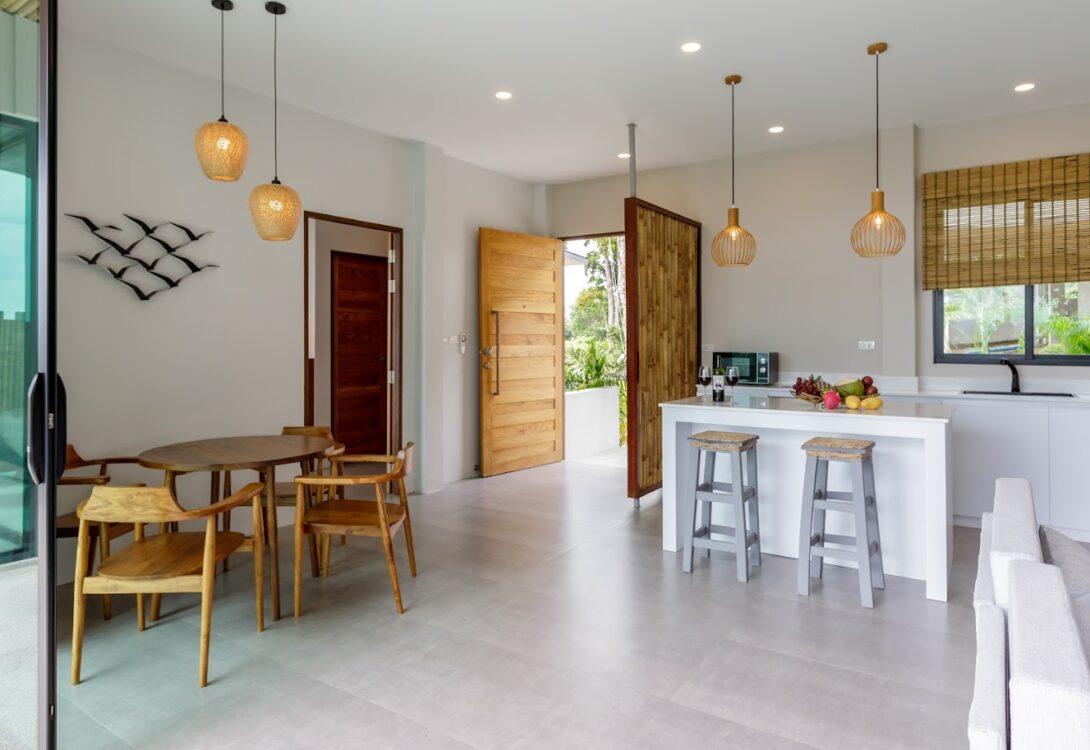 HinKong Views Pool Villa A offers 160 m² of modern living with beautiful views of Hin Kong Bay. This 2-bedroom villa blends comfort and simplicity, with bright open spaces designed for easy island living.