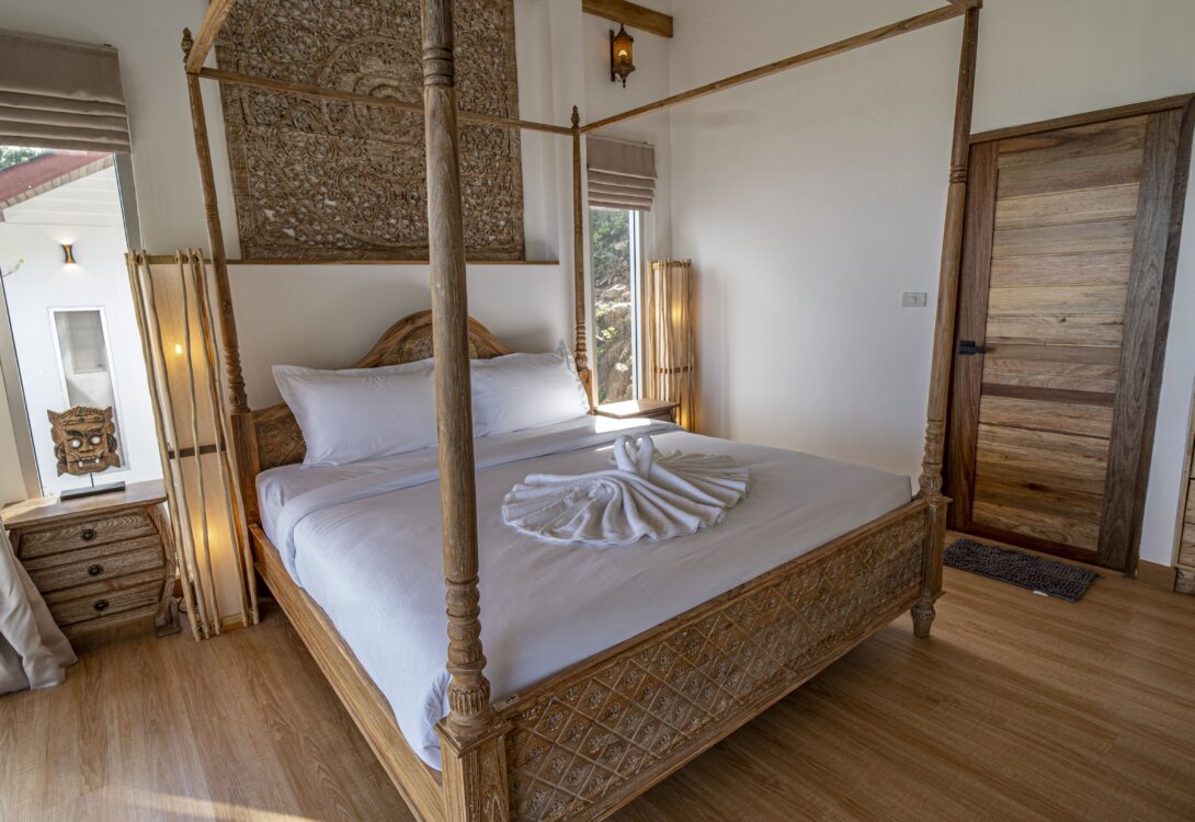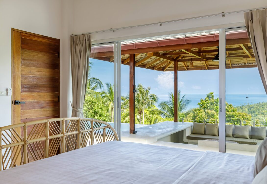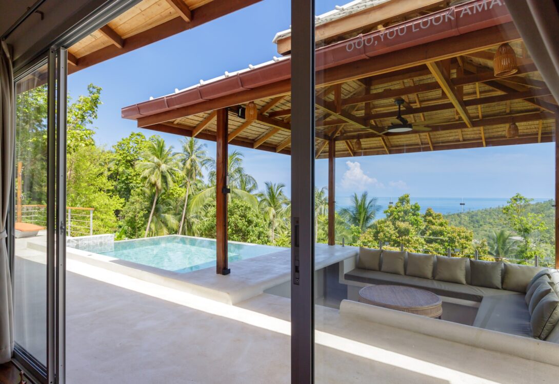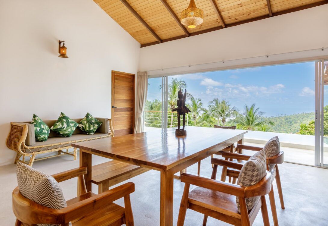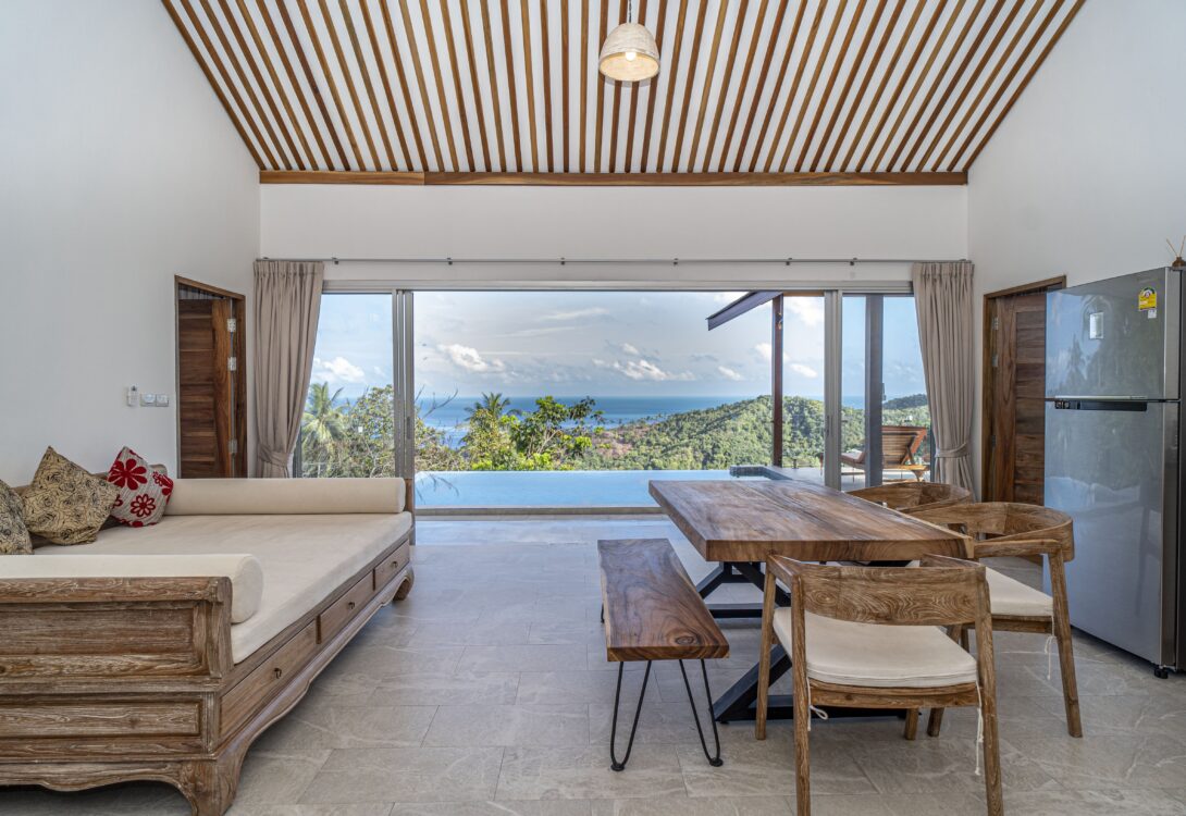 Santai 8 – 2 Bedrooms offers a peaceful Balinese-inspired retreat above Haad Salad, surrounded by greenery and open sea views. The villa’s warm tones, natural materials, and flowing layout create a relaxed yet elegant atmosphere — ideal for couples or small families seeking calm and comfort.