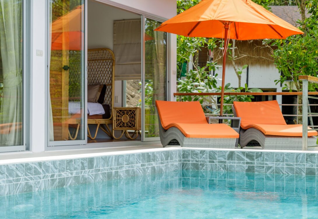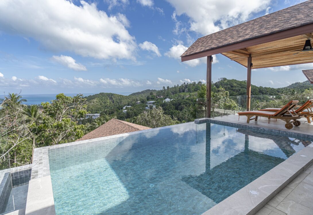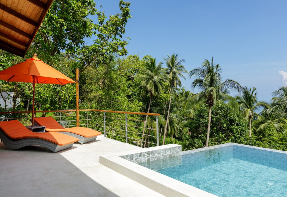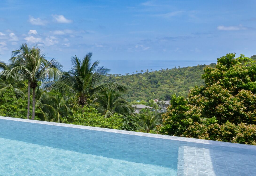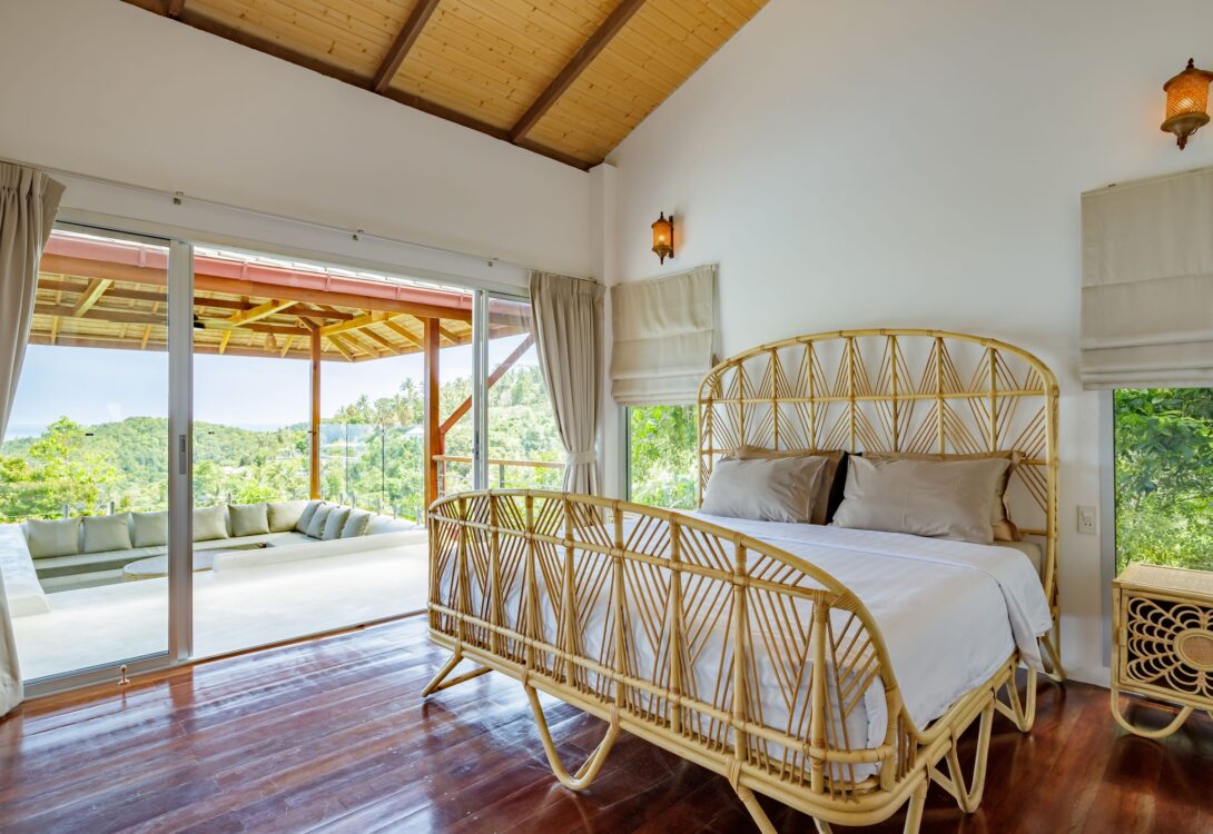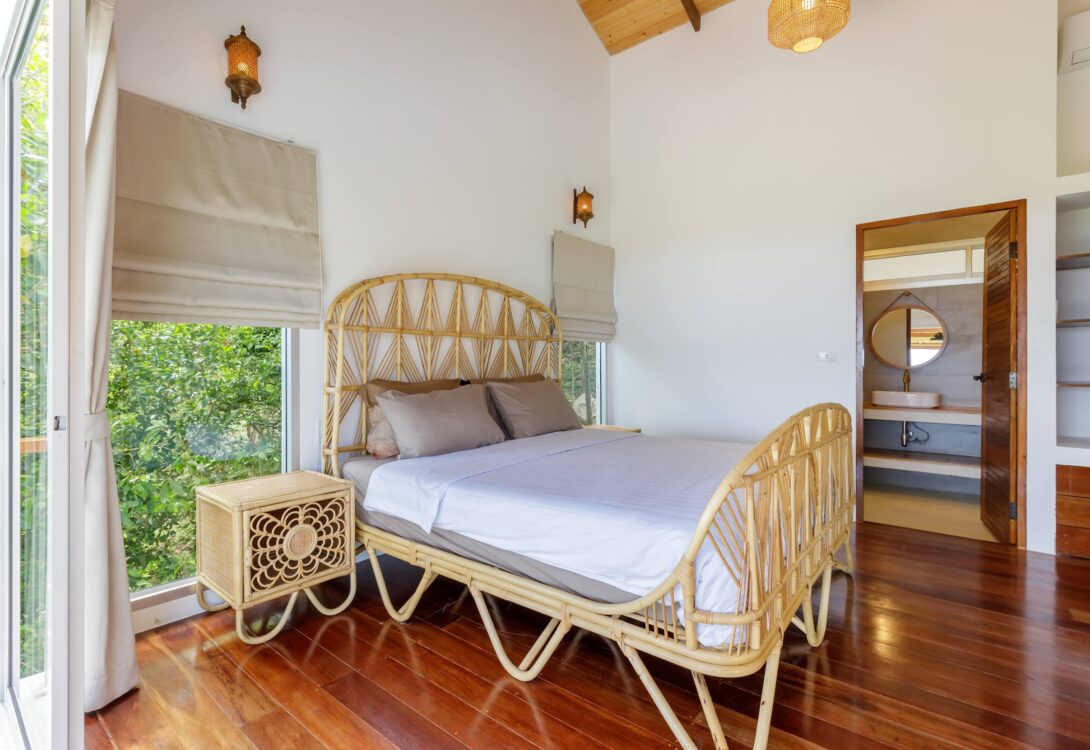 Santai 8 – 2 Bedrooms offers a peaceful Balinese-inspired retreat above Haad Salad, surrounded by greenery and open sea views. The villa’s warm tones, natural materials, and flowing layout create a relaxed yet elegant atmosphere — ideal for couples or small families seeking calm and comfort.