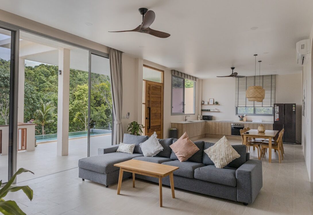 Located just minutes from Srithanu Beach and local shops, the villa offers a peaceful setting with everything close by for a pleasant Koh Phangan stay.