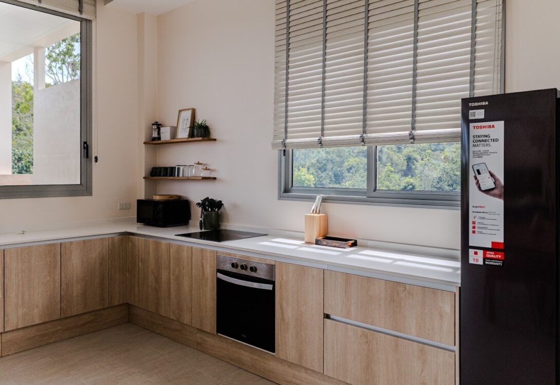 Each bedroom has its own bathroom and the well-equipped kitchen makes home-style meals easy. The spacious lounge opens to the pool terrace — a perfect spot to unwind or spend quiet evenings outdoors.